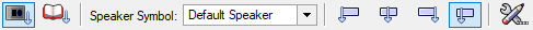 Inserts a speaker symbol from the resource library; symbol resources include preset data and detailed geometry for visualization, but respond more slowly to edits such as rotating the object |