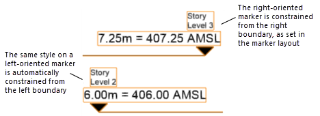 Restringe a distância do objeto selecionado em relação ao limite especificado (esquerda, direita ou ambos), para um marcador orientado para o lado direito de um objeto de desenho. Se você desenhar o marcador orientado para o lado esquerdo de um objeto de desenho (invertido), a restrição também será automaticamente invertida.