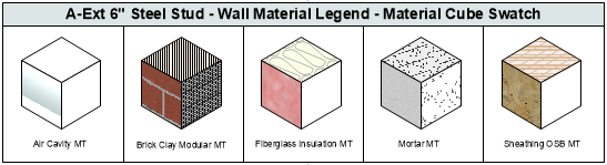 Em cada célula, a legenda pode mostrar uma ou mais visualizações do objeto, ou pode mostrar um atributo específico aplicado ao objeto, como o tipo de linha ou material.