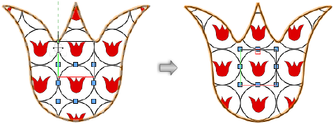 Clique em um objeto que contenha a imagem de preenchimento aplicada. Apenas um objeto por vez pode ser editado. Um retângulo com oito alças (retângulo de manipulação) é posicionado sobre a hachura.
