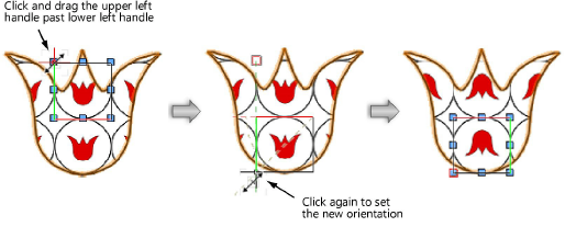 Clique e arraste um canto do objeto de edição além de outro canto do objeto de edição. Clique para confirmar o ajuste. Arraste horizontal ou verticalmente para inverter a imagem nessa direção; arraste na diagonal para inverter a imagem na horizontal e na vertical.