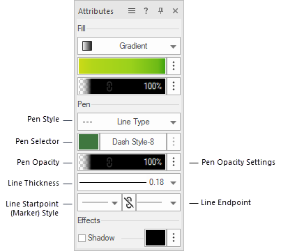 Os atributos também podem ser aplicados por configurações de classe (veja Configurando atributos de classe) ou transferidos com a ferramenta Conta-gotas (veja Transferindo Atributos).