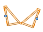 Hinge trusses are placed similarly and can only be placed in Single Insertion mode. After placement, select the hinge and adjust the hinge angle with the handles (or edit the Hinge Angle on the Object Info palette). The hinge angle must be between the Minimum and Maximum Angle specified in the Truss Properties dialog box; if not, the closest valid angle will be used.