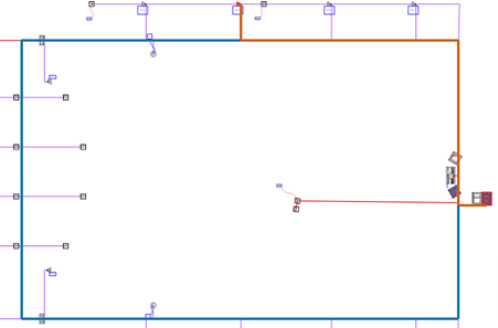 If the analysis is successful, every circuit object in the schematic is associated with a cable path segment. If there are circuits which cannot be associated with the cable path, an error message displays. If the problems are expected—for example, a camera has not yet been attached to the cable path network or to a drop point, or the routing is so obvious that the detailed cable paths weren't necessary—proceed with the design and make the connection later, or not at all. Otherwise, click Mark up Circuits to highlight the circuits which could not be assigned to a cable path, and correct any errors.