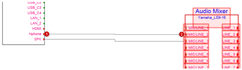In Multi Connect mode, click on the source device and socket type, and then click on the target device and first socket to connect. The entire target device is highlighted, and any eligible connections between the devices are created.