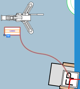 Alternatively, after placement, drag the equipment item's handle to the object to attach it. Once the equipment item and the object are associated, they move together. Next, attach the equipment item to a cable path network or to a drop point. You can also use the Cable tool from the Cable Route tool set to make this connection.