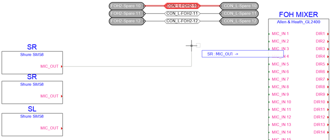 On the final connectivity schematic, create the devices that will be connected by the spare cabling.