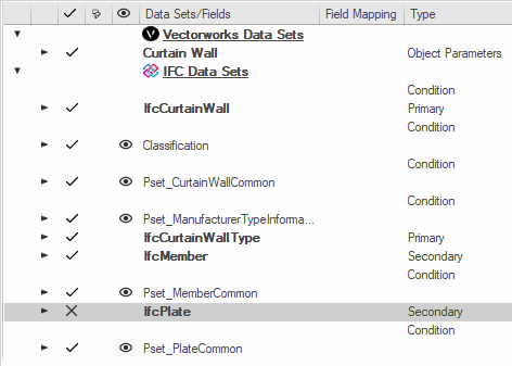 Os símbolos e a geometria personalizada devem ter dados IFC anexados para serem exportados. Seu mapeamento de dados IFC é baseado nas configurações de seu tipo de entidade IFC designado.