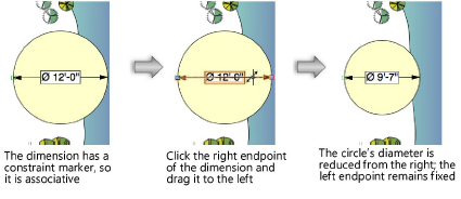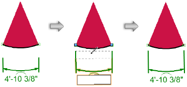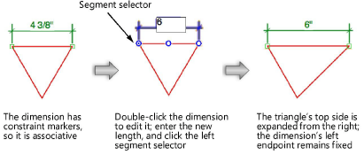 Dê um duplo clique em qualquer lugar da cota para acessar o modo de edição de texto. Informe o comprimento desejado e então use o seletor de posição do segmento para especificar o segmento desejado permanecerá fixo se a cota for redimensionada. Se preferir, escolha a ferramenta Texto e então clique no texto da cota para acessar o modo de edição de texto. Em cotas associativas, uma mudança no comprimento de uma cota linear também altera o tamanho do objeto associado.