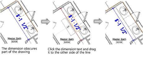 Com a ferramenta Seleção, clique em uma linha de referência (mas não em uma extremidade) ou em um dos dois pontos de controle em cada extremidade de uma linha de cota e arraste toda a cota para um novo local. Nas cotas associativas, isto também move o objeto associado. |
