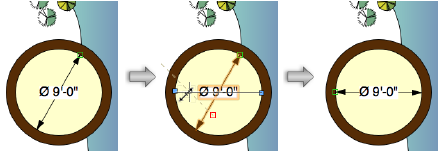 Modificando a rotação de uma cota radial ou de diâmetro |