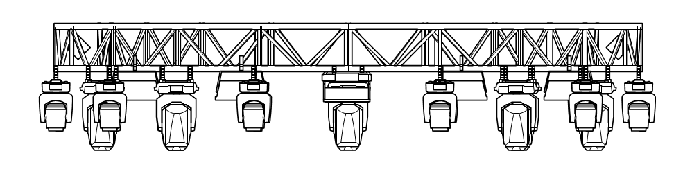 In a schematic Front view of the circular truss system, the overlapping trusses are placed on top of each other for a realistic appearance