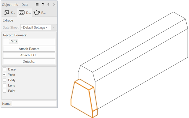 The Parts record is required for proper rotation of each cell symbol. Complete the following steps to attach the Parts record to the cell’s lens, body, and 3D locus point—and to the base, yoke, and accessories if they are present in the cell. (Later in the workflow, you will attach the Parts record to the multi-cell container symbol to define the device rotation point and specify which cell controls each light emitter.)