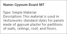 O nome, a descrição e o tipo (simples ou composto) são exibidos quando o cursor passa sobre o material no Administrador de Recursos ou no Seletor de Recursos. A descrição normalmente inclui informações como o uso comum do material, sua composição, informações sobre o tamanho, se relevante, e assim por diante.