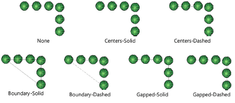 For multiple plant placements, changes the display of the boundary or center polygon defining the plant cluster shape.