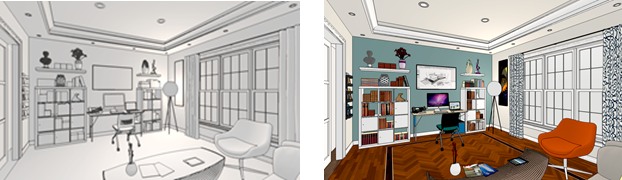 O Vectorworks oferece vários modos de renderização, que podem criar diferentes efeitos visuais, desde linhas escondidas até fotorrealistas e efeitos de esboço. Esses modos de renderização podem ser usados para ter uma noção de como objetos, texturas, sombras e outros detalhes serão renderizados em um projeto. O uso de estilos do Renderworks, em vez de modos de renderização, reúne o modo de renderização selecionado e suas opções, as opções de iluminação, os efeitos de câmera do Renderworks e o plano de fundo do Renderworks em um único recurso que pode ser usado rapidamente quando necessário.A seleção do modo de renderização ou estilo do Renderworks pode produzir efeitos muito diferentes e, em desenhos complexos, pode exigir várias quantidades de tempo e recursos de computador. É importante selecionar o modo ou estilo de renderização apropriado para sua atividade atual e fase do projeto.