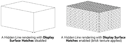 Exibe hachuras de superfície em uma vista de apresentação em Linhas Escondidas