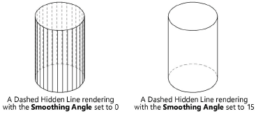 Define o ângulo para reduzir as linhas de faces quando o modo Linha Escondida, Linha Escondida Tracejada ou Sombreamento Sólido Final; se o valor for maior do que zero, as linhas facetadas serão removidas entre quaisquer duas faces de um objeto que estejam dentro no intervalo de ângulo definido