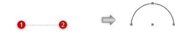 Quando a tecla Shift é pressionada, o ângulo da linha entre os pontos finais do arco (cliques 1 e 2) é restrito, e a corda que define a altura do arco é perpendicular ao centro dessa linha.