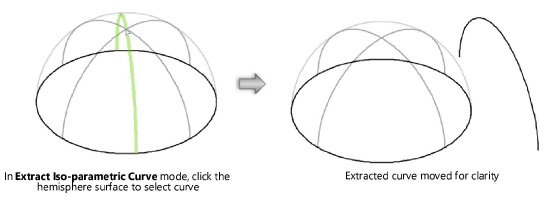 A ferramenta Extrair permite extrair geometria a partir da aresta ou superfície de uma superfície NURBS ou objeto sólido, mantendo o original intacto. A geometria extraída pode ser usada para encaixar ou para outras operações de superfície.
