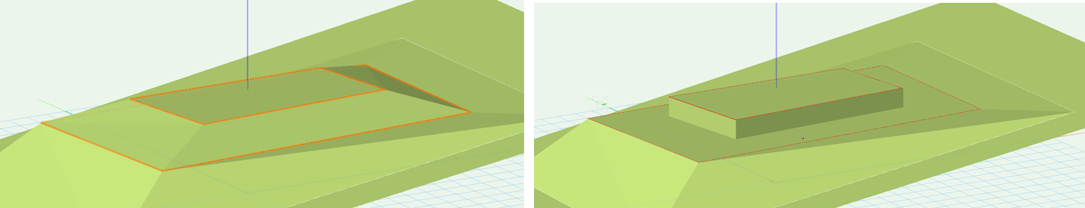 In 3D views, represents the modifier with a 3D mesh. This is convenient when working with a modifier independently of a site model, or when it's helpful to view the site modifier on the surface of the site model in 3D views. Deselect the option to view only the effects of the modifier on the site model. |