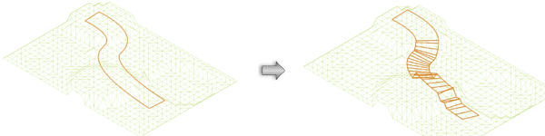 Fits the retaining edge or retaining wall left/right edge to the surface, modifying existing vertices and/or adding new vertices |