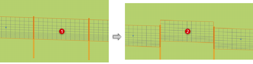 You can only join fences at a post, not along an infill segment. The posts of the two fences to join must be aligned. T joins can connect only posts; one of the posts is automatically deleted, and the remaining post is converted to a corner post.