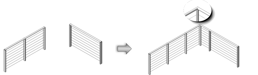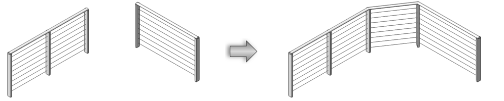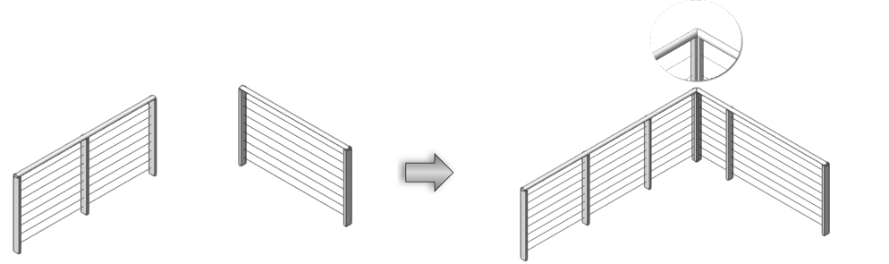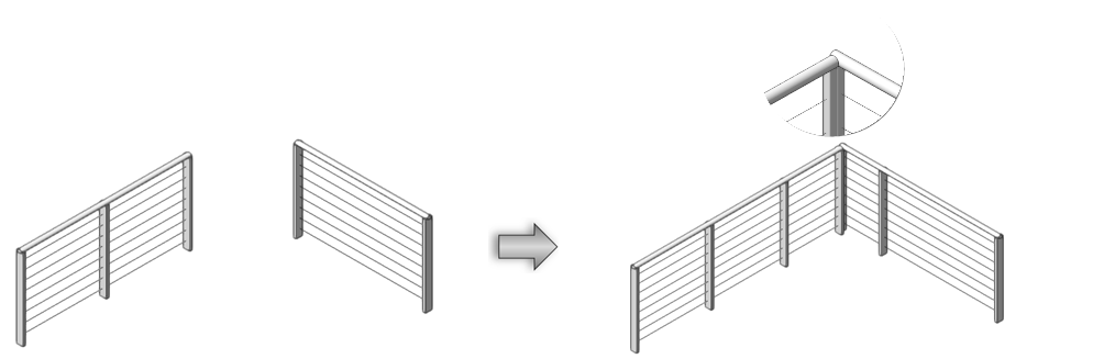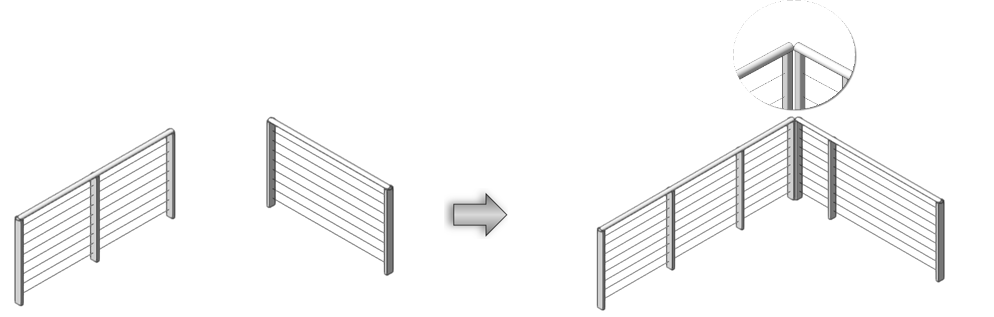 A ferramenta Junção de Guarda-Corpo conecta objetos de corrimão de várias maneiras.