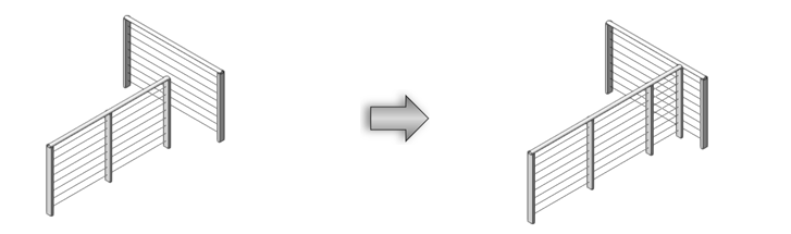 Quando ativado, corresponde à elevação das alturas da travessa superior para que os objetos se conectem ou se combinem perfeitamente. O primeiro corrimão encontra o segundo corrimão. |