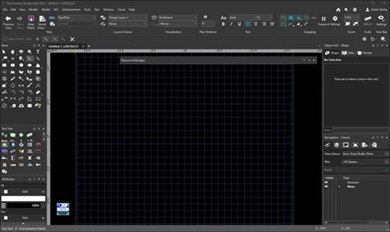Workspace do Vectorworks Design Suite no Windows - modo Light
