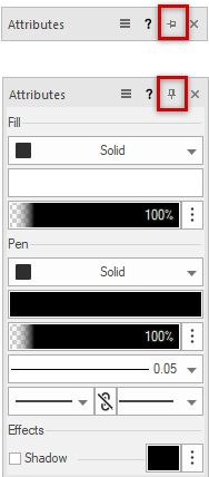Paleta flutuante com o recurso Ocultar automaticamente ativado (parte superior) e desativado (parte inferior)