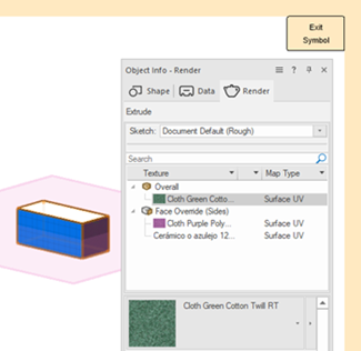 As texturas devem ser aplicadas e gerenciadas para componentes 3D individuais de símbolos no modo de edição de objeto (veja Modo de edição de objeto).