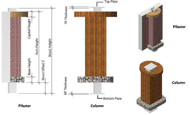 Selecione se deseja usar apenas componentes arquitetônicos, apenas componentes estruturais ou uma combinação de componentes arquitetônicos e estruturais para a coluna/pilastra. Dependendo da seleção, opções diferentes estão disponíveis. Quando os componentes Arquitetura e Estrutural são selecionados, a altura dos componentes arquitetônicos e estruturais pode ser definida individualmente. |