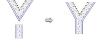 A ferramenta Junção de Componentes une os componentes selecionados entre dois segmentos de parede retas; componentes dentro de segmentos de parede unidas pré-existentes também podem ser juntadas. Existem três modos para juntar os componentes da parede.