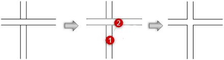 O modo Junção em X une dois segmentos de parede no ponto em que eles se cruzam. Como o comprimento de nenhum segmento de parede é alterado, os dois segmentos já devem se cruzar para usar este modo.