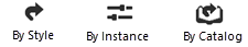 Um gráfico indica se cada parâmetro no estilo está definido como Por Catálogo e definido pelo item de catálogo, definido como Por Estilo e recebe um valor fixo pelo usuário ou definido como Por Exemplar e editável na janela de diálogo. Um estilo de objeto pode ter uma combinação das três configurações para equilibrar a necessidade de consistência e flexibilidade. Por Catálogo/Estilo/Exemplar as configurações são estabelecidas pelo estilo e não podem ser alteradas na janela de diálogo de configurações.